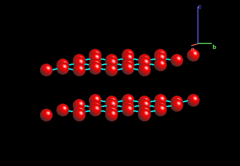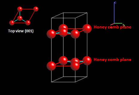 honey comb 층상구조 사이에는 약한 van der waals 결합이 작용하며 그로 인해 판상으로 잘 쪼개진다. 층상구조 사이의 공간을 통해 전자가 잘 이동하며 이로 인해 이등방성의 전자전도도를 가진다.