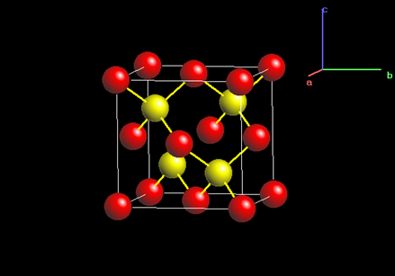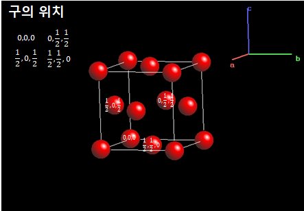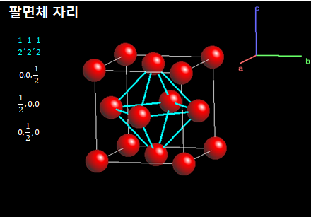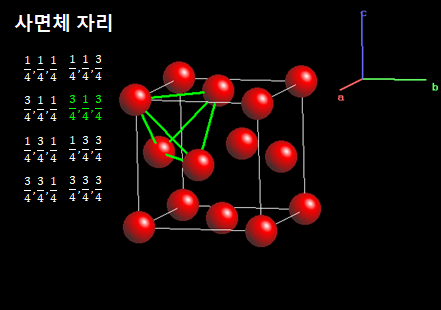 입방 밀집을 이루는 원자는 단위포 내에 4개의 원자와 8개의 사면체 자리 4개의 팔면체 자리를 가진다. (위의 그림에서는 일부만 표현하였다)