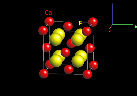 형석(fluorite)의 구조는 입방밀집구조를 이루는 Ca의 사면체 구조에 전부 F가 들어가 있는 구조이다. F를 기준으로 볼 때 단순입방구조의 단위포를 이루고 그 단위포 중앙의 절반을 Ca가 채우고 있는 것으로 해석할 수 있다.