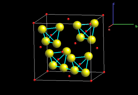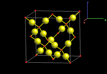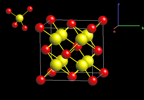 Pyrite 구조는 입방밀집을 이루는 Fe 구조에 S2 분자가 들어가 있는 구조이다. 이는 NaCl의 구조와 유사한 구조로서 Na자리에 Fe가 Cl 자리에 S2 분자가 위치하고 있다.