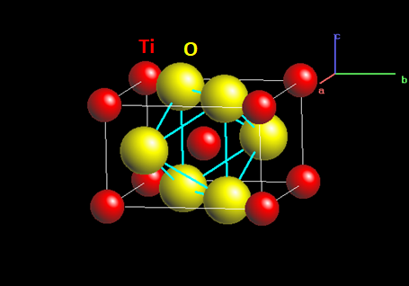 루틸은 Ti가 tetragonal 체심 단위포를 형성하고 산소가 체심의 Ti를 팔면체 구조로 둘러싸고 있는 구조이다. 다만 산소가 이루는 팔면체는 조금 찌그러진 상태이다.