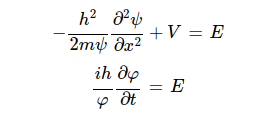 슈레딩거 방정식은 x와 t에 대한 방정식인데 위의 2개의 방정식중 아래의 방정식이 시간에 대한 함수가 된다. 1계도 미분방정식이므로 φ(t)=e^at 꼴의 함수가 그 해가 될 것이다.