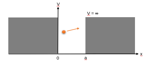 x가 0<x<a인 구간에서는 V = 0이다. 그러므로 슈레딩거 방정식은 아래와 같이 주어진다.